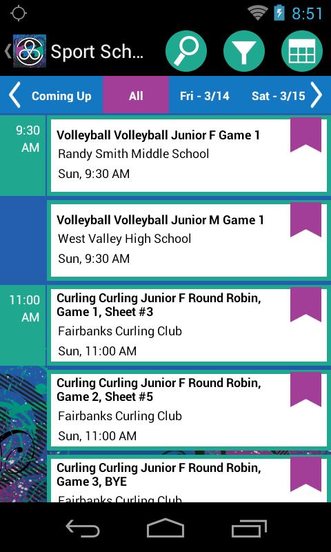 • Schedules – Figure out what’s going on when. Use this feature to help plan out which sporting events you’ll want to see.