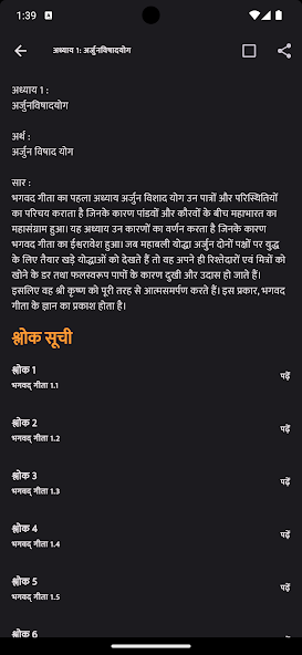 Designed for ease and tranquility, the app ensures a seamless experience as you traverse the spiritual teachings of the Gita.