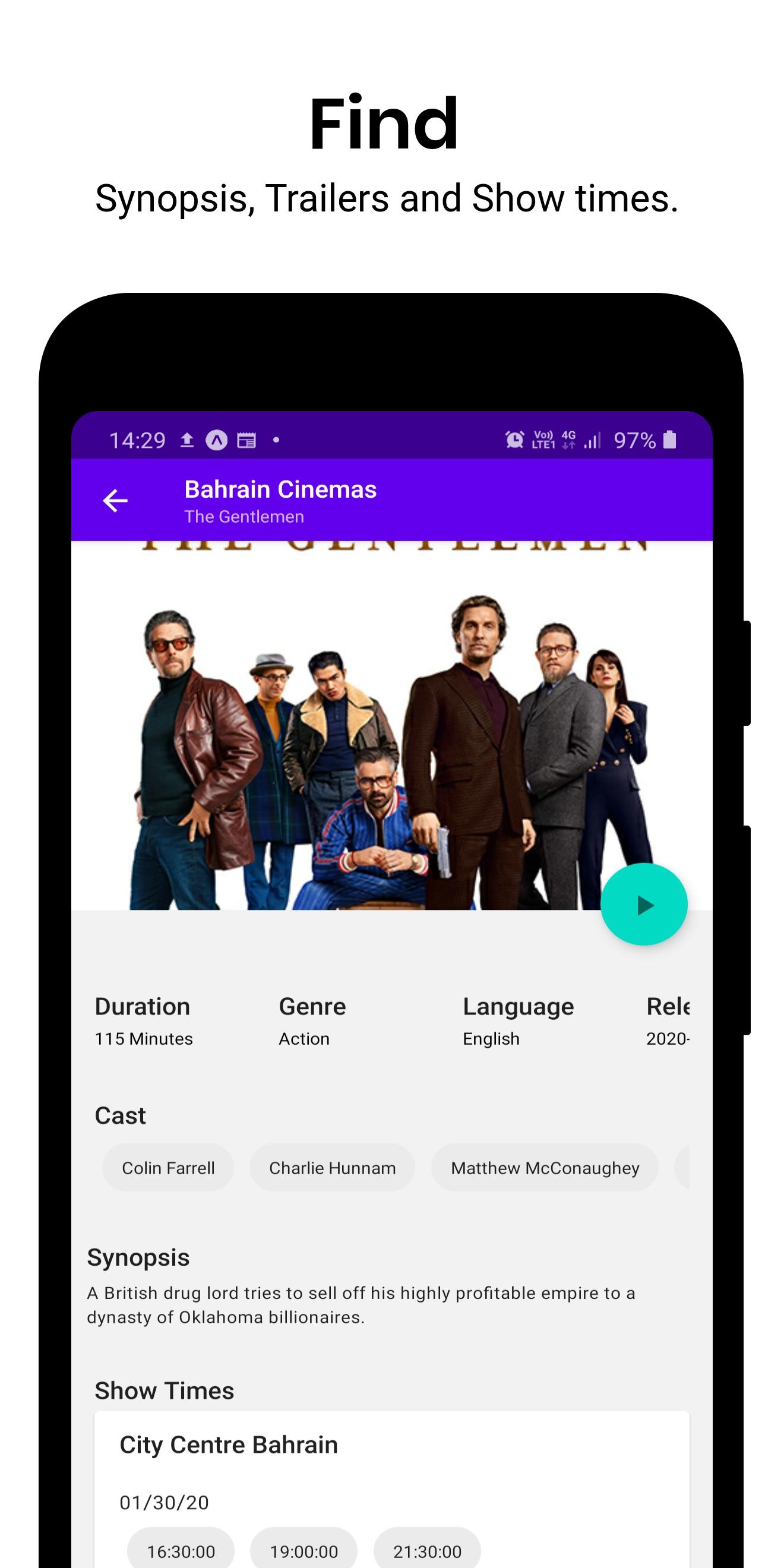 Quickly access movies shown in Bahrain and get their synopsis and show times.