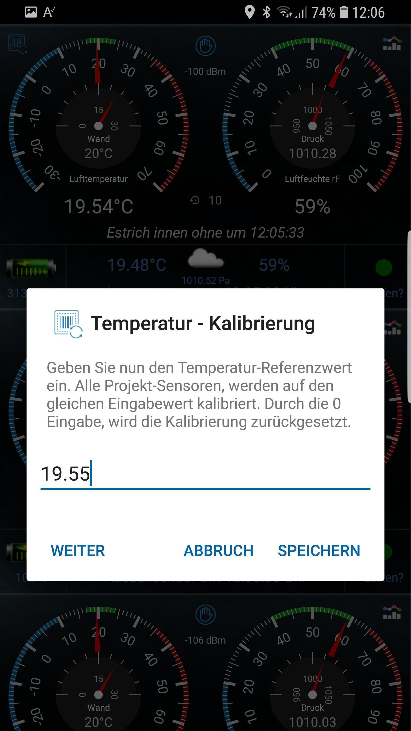 However, the app can also be used without the sensors, and the outdoor values can be queried from the surrounding weather and the internal values can be entered manually for calculation.
