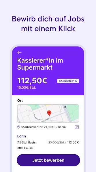 The part-time jobs you find in our app are individual shifts that are between 4 and 10 hours long. They take place at any time of the day and on any day of the week. You choose the shifts or jobs that suit you best – spontaneously or in advance. So you decide when, where and how often you want to work.