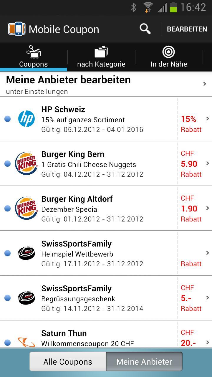 You will find coupons from various vendors in Switzerland with the Mobile Coupon app. It's quick and easy to redeem the coupons at the POS payment terminal in the vendor's store.