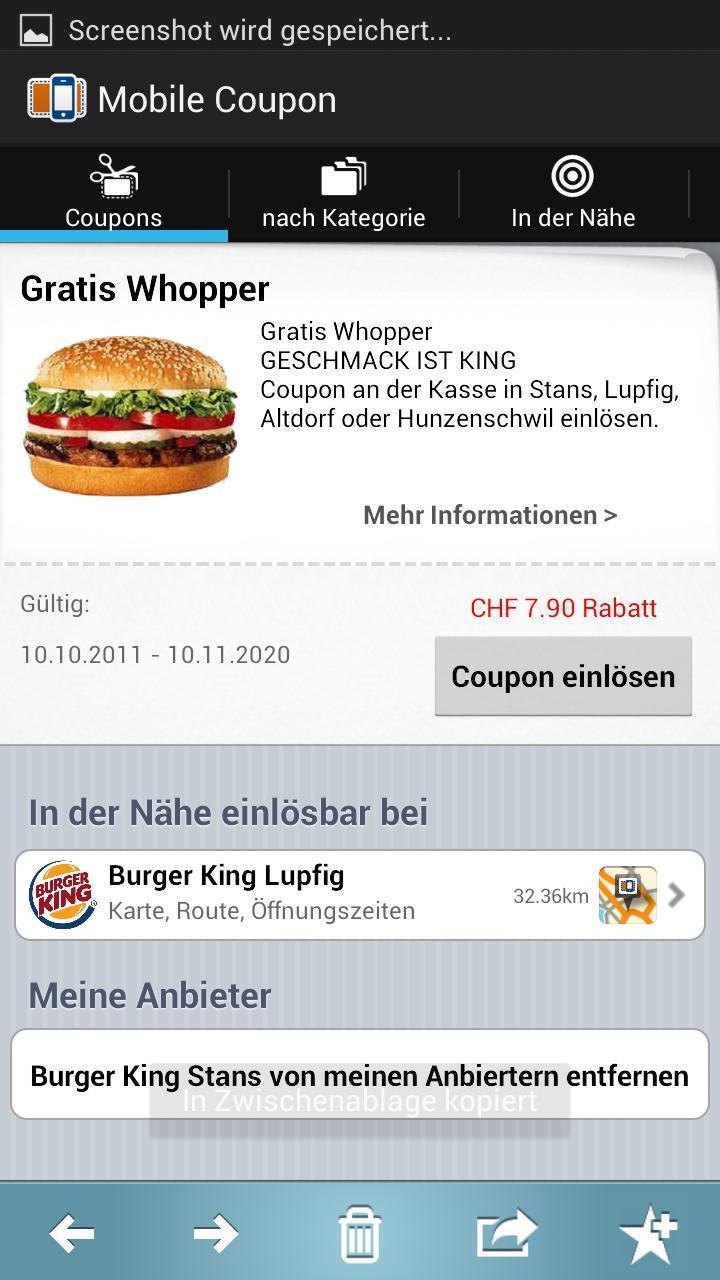 The app can be personalized and coupons that are valid at the user's location displayed. What's more, new coupons are sent straight to the smartphone and can be added to the watchlist or forwarded to friends using the Share function on Facebook.