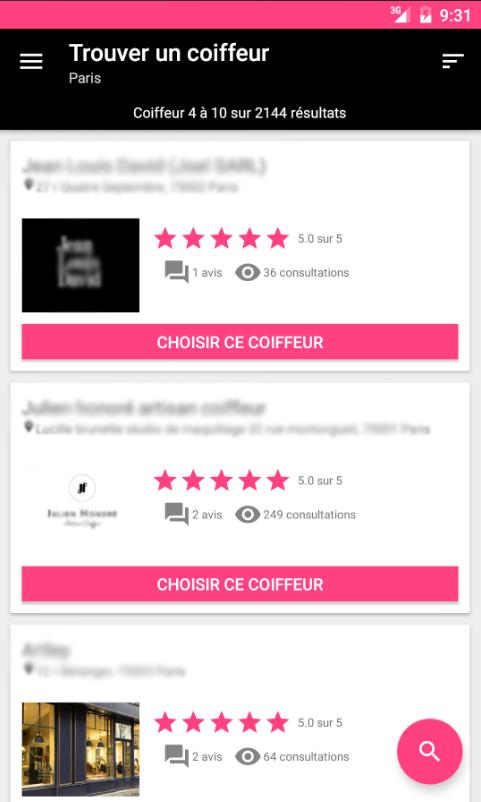 - Find a hairdresser near you (sorting possible per note, number of reviews, brand)