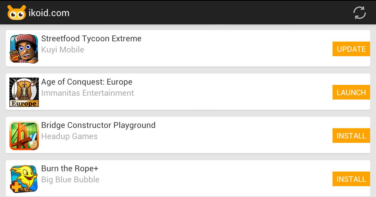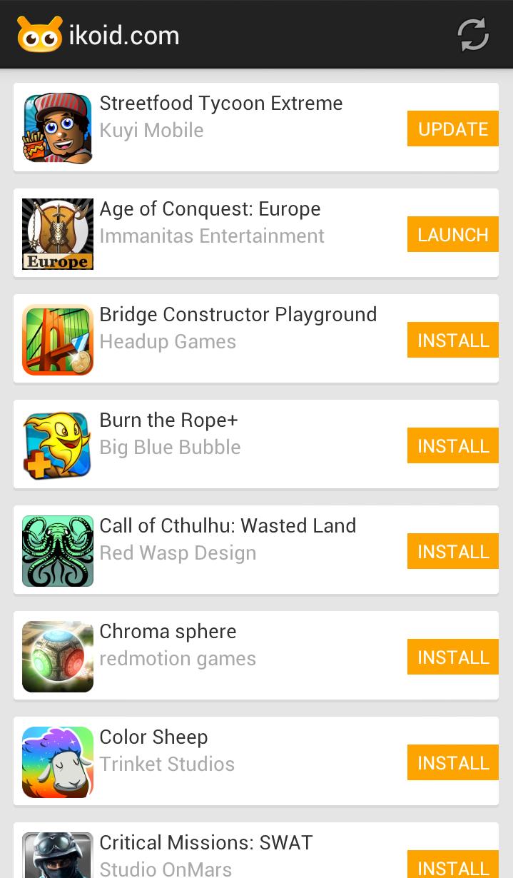 The ikoid app enables you to manage your Android games collection at ikoid.com. Install and remove games with one touch, and check which games have an update available.