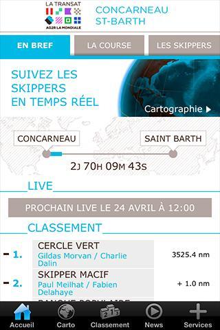 Be in the heart of the event in live with a revolutionary 3D tracking system, RSS news, video, audio, photos, an exhaustive and interactive leaderboard.