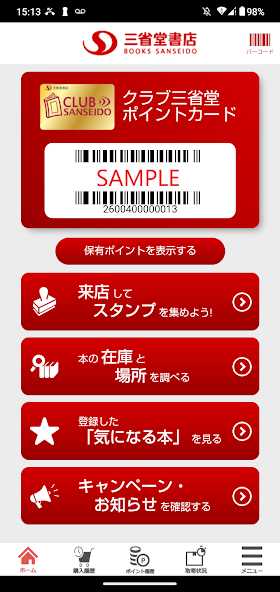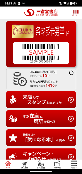 ・When purchasing items you can substitute this app for the membership card by simply showing the application`s barcode screen at any outlet of SANSEIDO BOOKSTORE LTD.