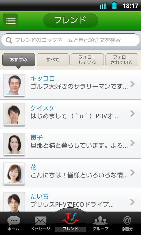 "Toyota Friend" is a smartphone application for Toyota Prius PHV owners. This is a social networking service that allows owners to make new friends, share information, and encourage cars to charge when the PHV battery is low.