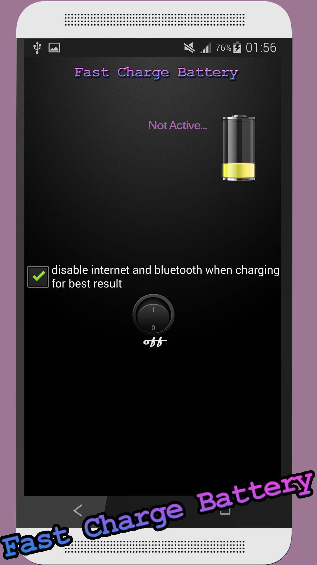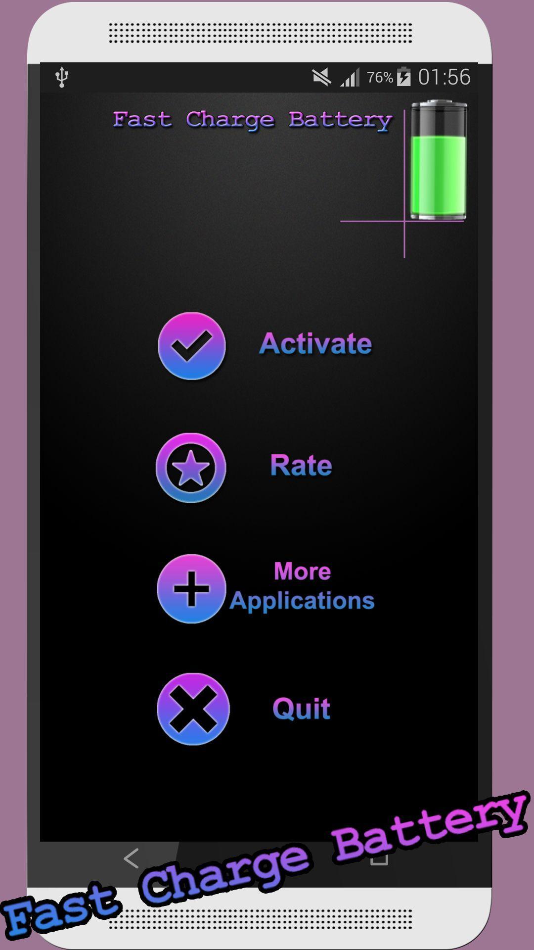 all of us hate waiting for hours when our smartphone battery being charging , no more of that now , we have the solution it's the best fast charger batteryin the market. so you can have a break coffee and have your battery phone fully charged .How It works ?-when you active the program1/all the unused applications in the background will be killed and closed , these apps consume battery and make slow the charge of your phone so now it's over.2/(optional) for best result and an ultra fast charging you can choose in the app menu to disable all communications during the battery charging (data mobile , wifi ,internet , bluetooth)according to our tests , this will reduce the time charging of your battery by 20% - 35% (of course depends on device)so we hope that it will help you to forget the problem of wasting electricity and time when charging your phone .please ,don't forget to rate and comment us to improve our application.