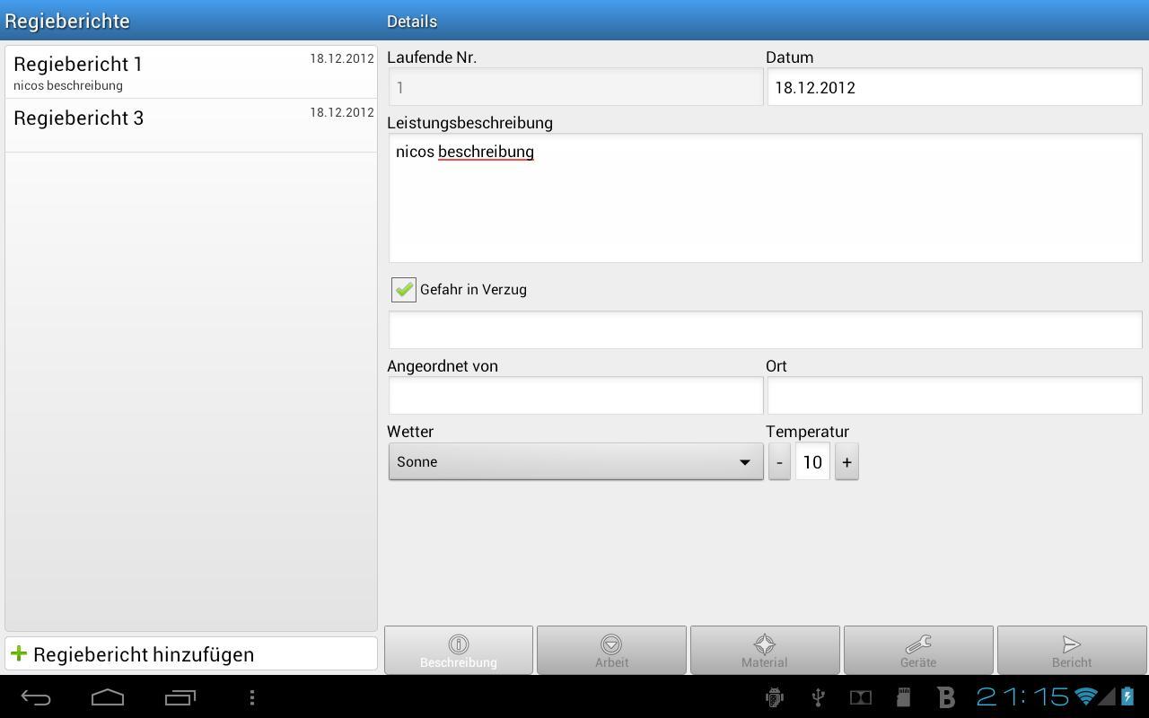 bau.io Director report enables writing and sending of reports and hours Director reports. The app is designed for builders and craftsmen. The writing of the report is available directly from the site from. The app eingnet also for writing a daily progress report, daily report or building report. The Bauapp has proven itself in the Apple environment already widely. The input of the hourly report is easy and intuitive.