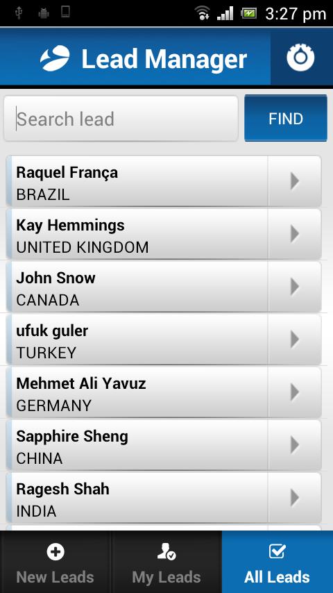 • The All leads option lets users view the list page. Now this page contains all leads from the server.