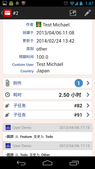 - When the Redmine server-side is updated, the data needs to be synchronized. Please synchronize the data with Setting -> Master Data Setting.