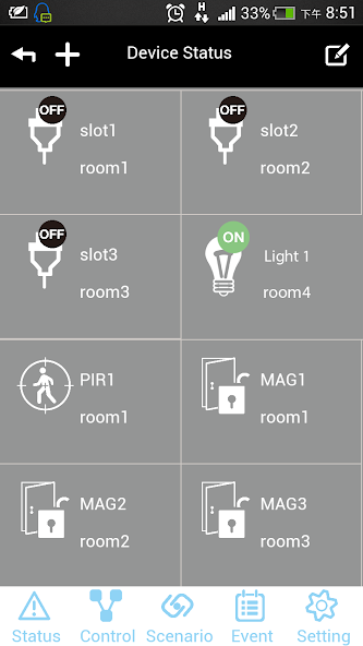 devices such as Power Switch , PIR Motion Detection , Door Contact.