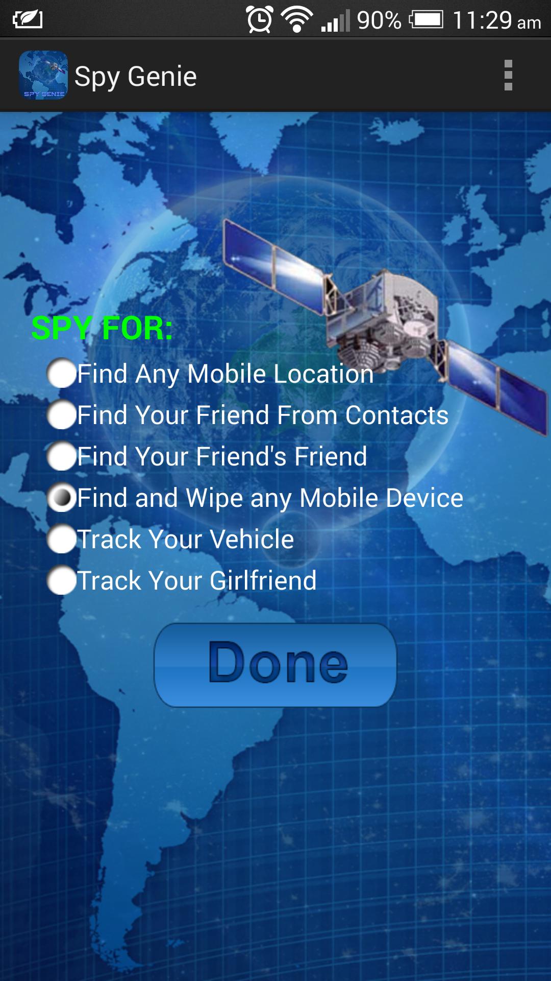 Spy Genie is the ultimate spying tool that you can use to trick and scar anyone. Spy Genie uses your phone's current location and tags it on a map. This leads to your friends in believing that you have located their phone. Spy Genie than can optionally send a hoax text message to the target phone about their phone being hacked by you and all the data will be wiped (this option can be disabled from the settings).