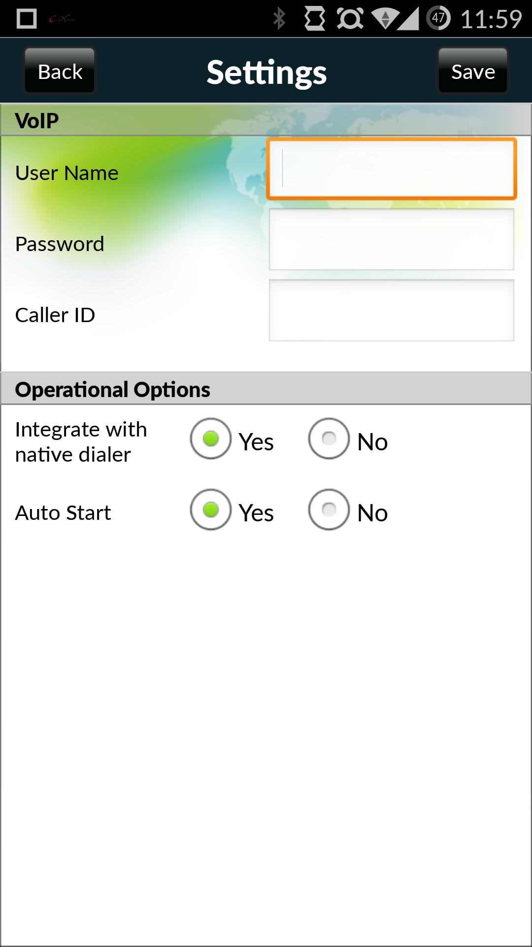 • Making VoIP calls to supported GSM numbers and to other sip clients.