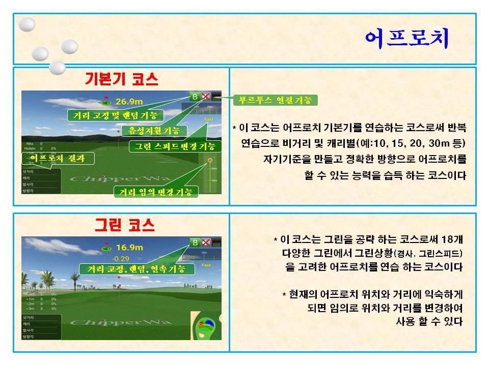 The Approach mode practices the desired carry and distance, precise direction and impact, and green attack in consideration of the green situation.