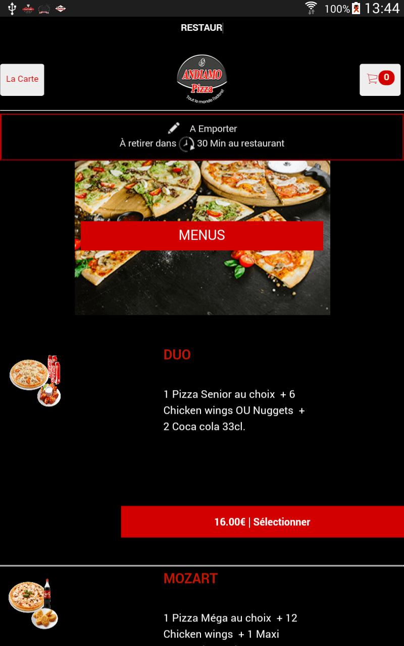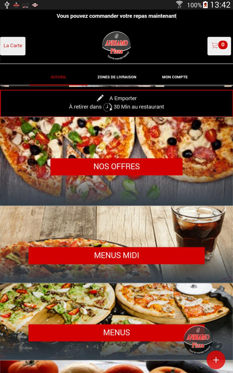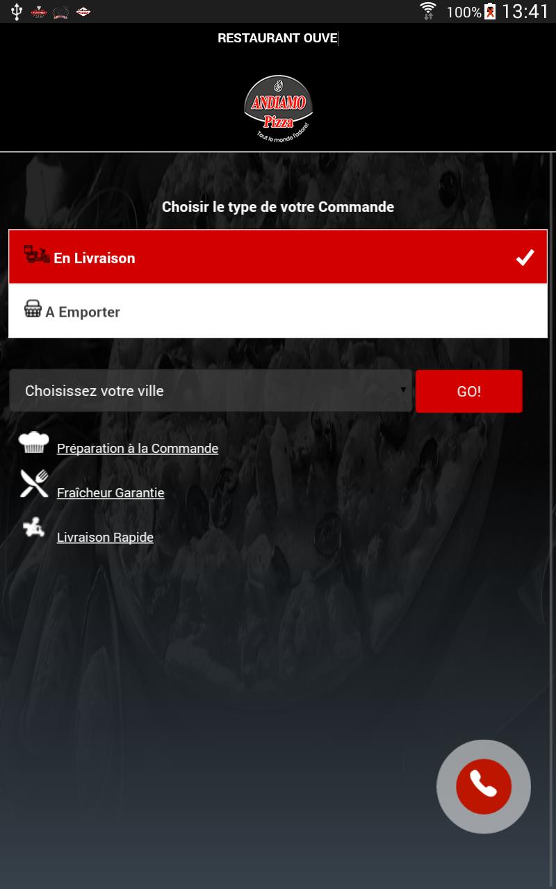 The Android Andiamo Pizza Athis application allows you to order online or by phone via your application. You can consult our card and choose your products.