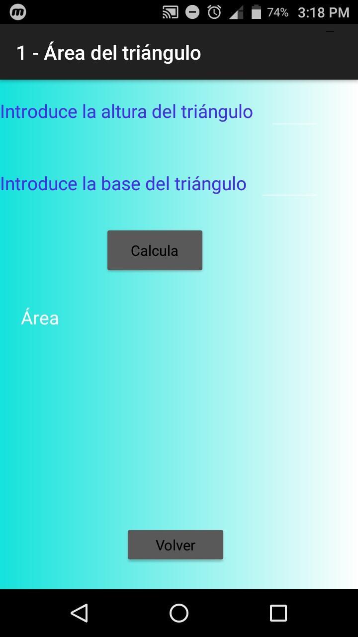 This application has the function of helping you calculate the area of a circle, the area of a triangle, the hypotenuse of a triangle (Pythagoras theorem) and the body mass you have.