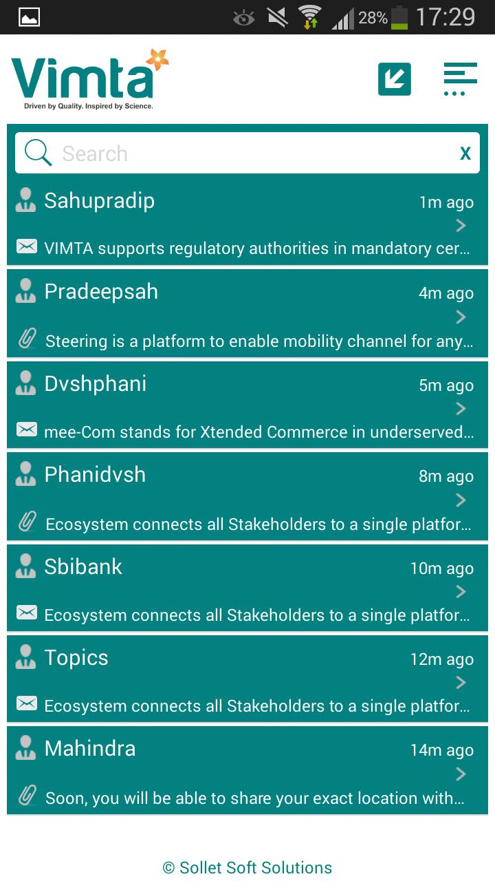 Vimta sBuzz App works on internet to communicate between the vimta and its employees/clients. Employees/Clients can recieve messages like Text, Images, document, audio and videos from vimta.