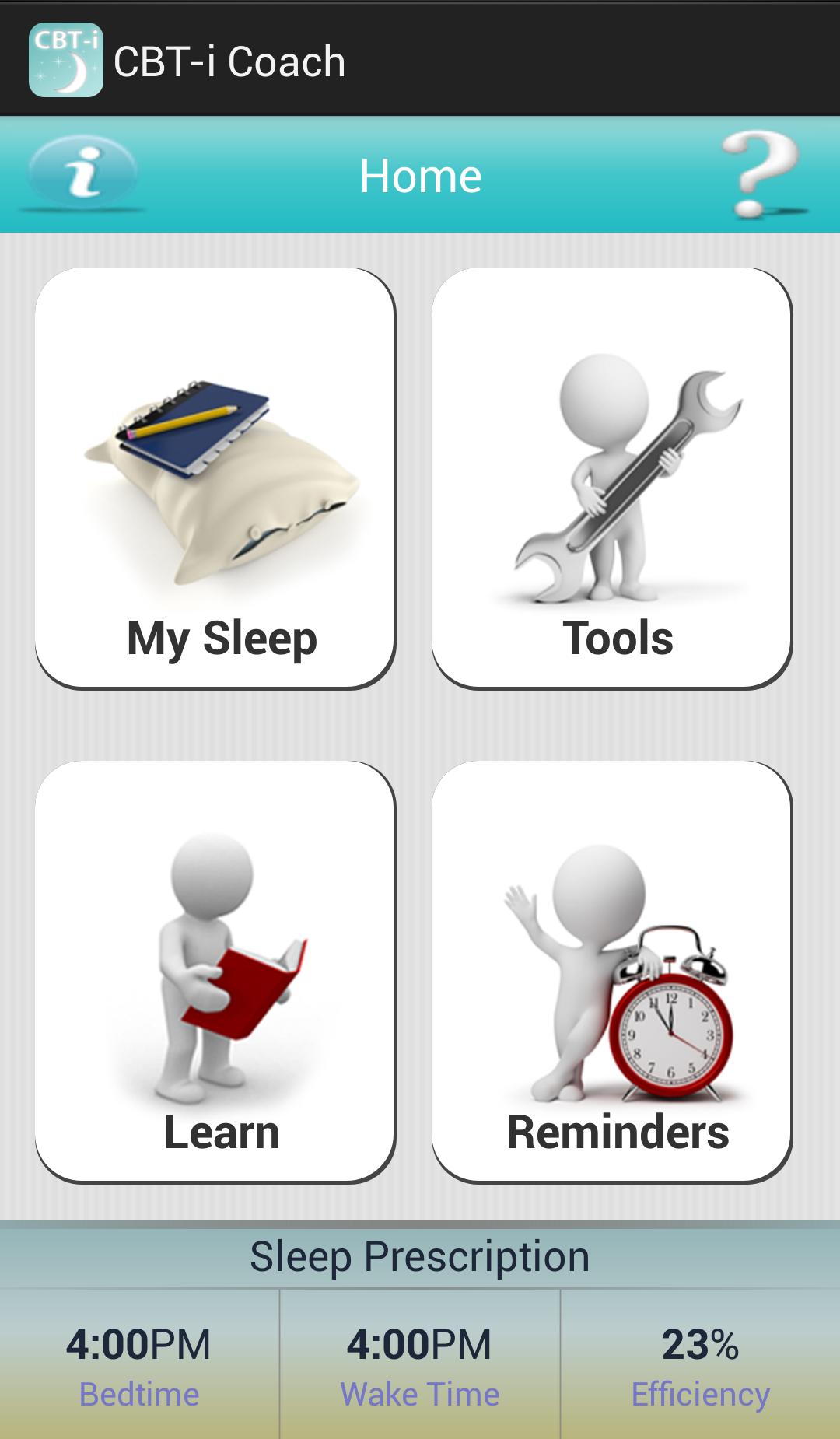 CBT-i Coach is for people who are engaged in Cognitive Behavioral Therapy for Insomnia with a health provider, or who have experienced symptoms of insomnia and would like to improve their sleep habits. The app will guide users through the process of learning about sleep, developing positive sleep routines, and improving their sleep environments. It provides a structured program that teaches strategies proven to improve sleep and help alleviate symptoms of insomnia.