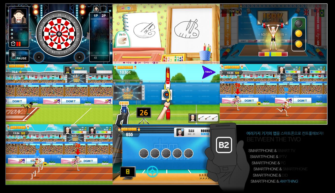 B2 is an Interaction Platform using GUPPI engine, it connects N-screen devices like PC or Smart TV with smartphones. The Developer can produce dynamic and user-oriented contents by B2 because it makes possible to make desktop browser and smart TV applications much easier.