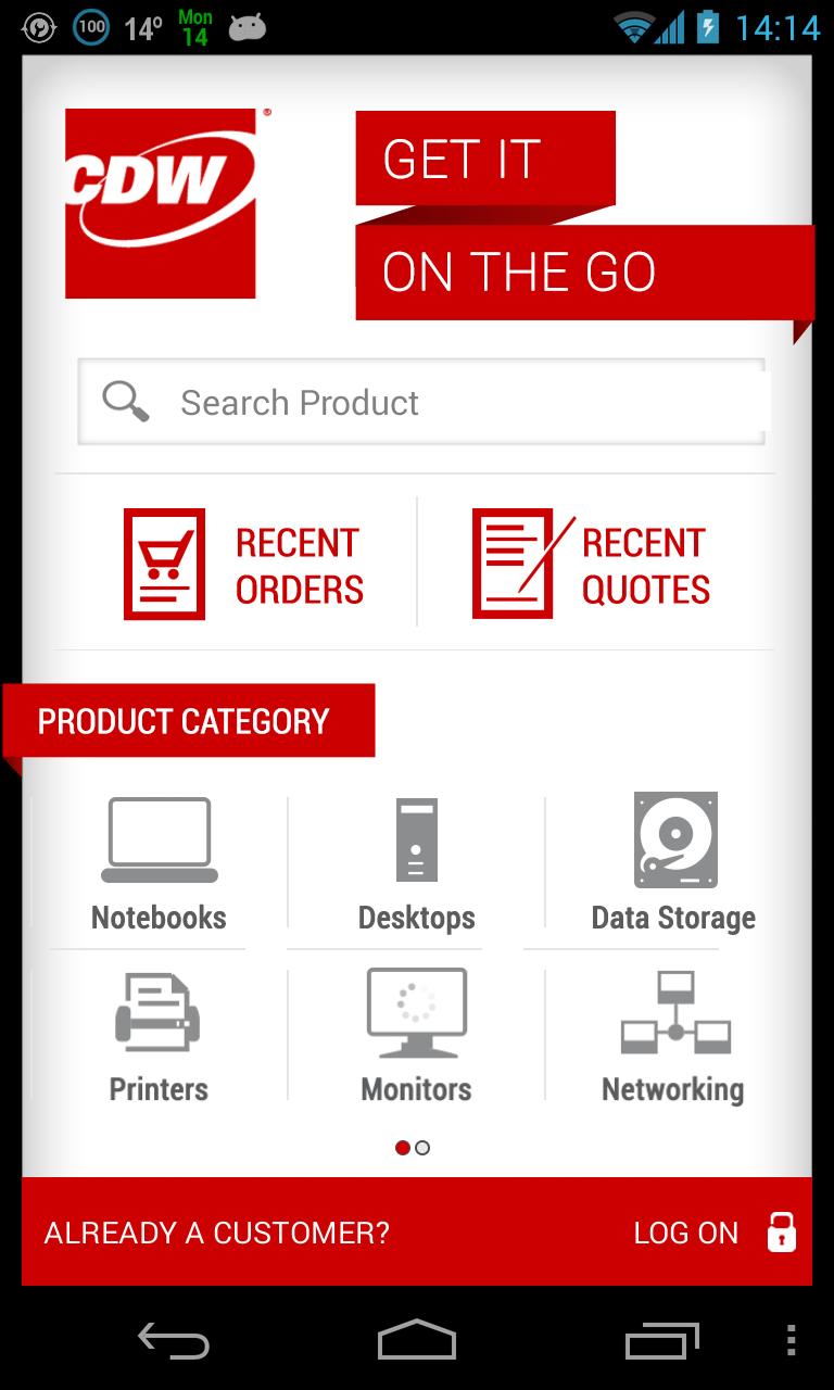 The new CDW app lets you browse, search for, and order from our entire catalog of products. With quick access to your recent orders/quotes and secure checkout built right into the application, your shopping cart can go where you go.