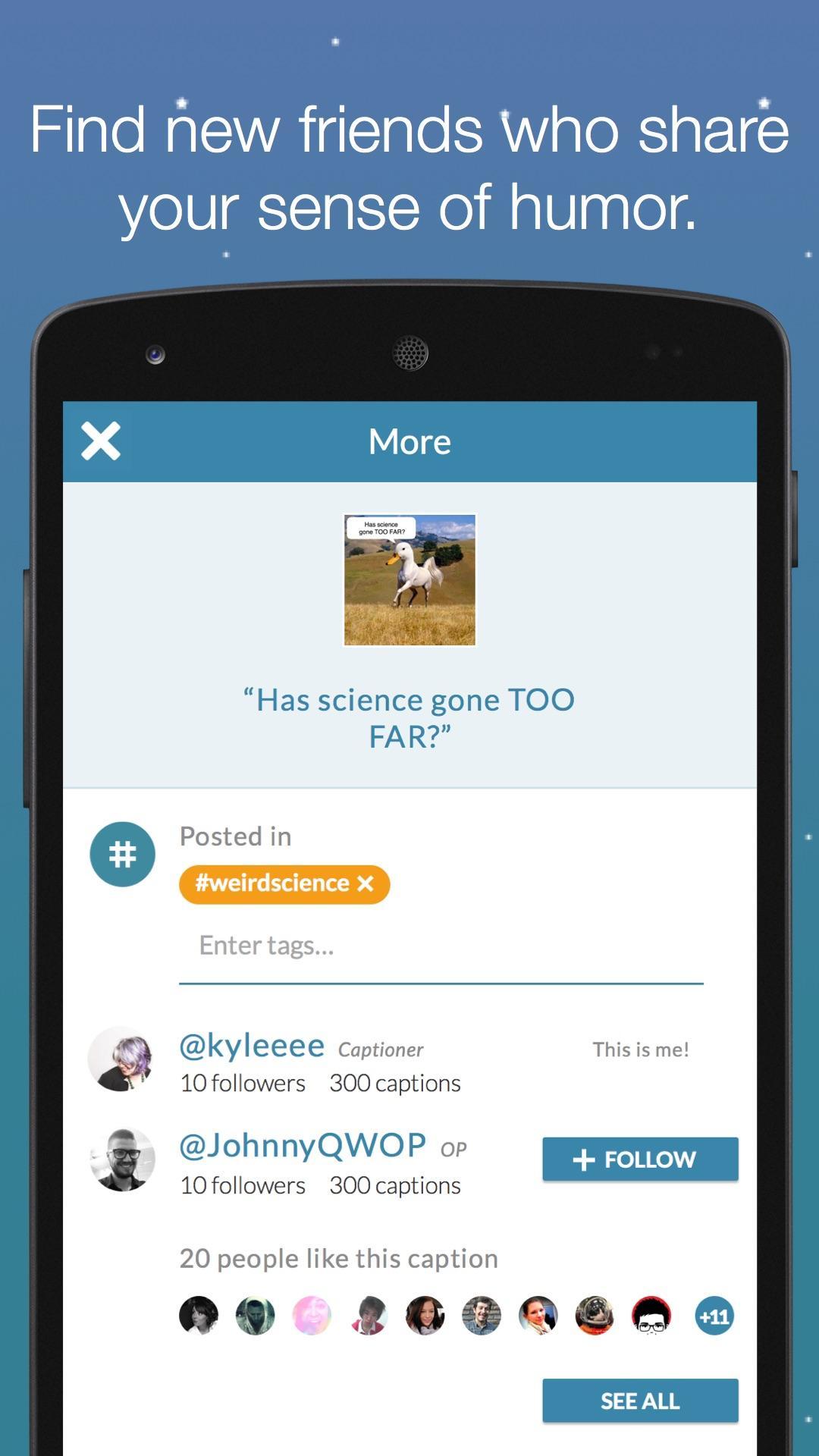 It's easy! Snap a picture, add a caption and share with your followers and friends. Like it, Share it, Recaption photos to remix moments for endless fun.