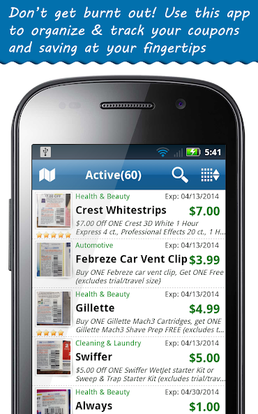 Do you want to save $$$ by using coupons but also want to SAVE TIME to input/organize/track your coupons? Download this coupon organizer, scan the coupon, and be a happy couponer!