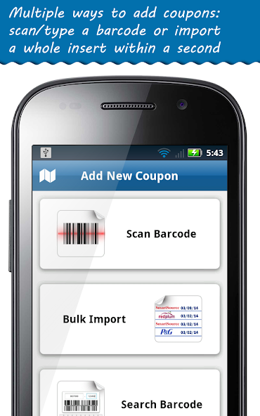 * Search coupon barcode to input coupon details automatically, it's very handy when your device has difficulty to recognize coupon barcode;