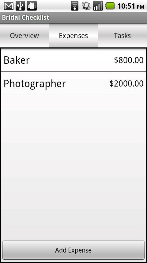 Helps keep track of common wedding tasks and expenses. Includes an overview tab that gives info about your wedding budget, total expenses, budget remaining, tasks completed, and days until your wedding.
