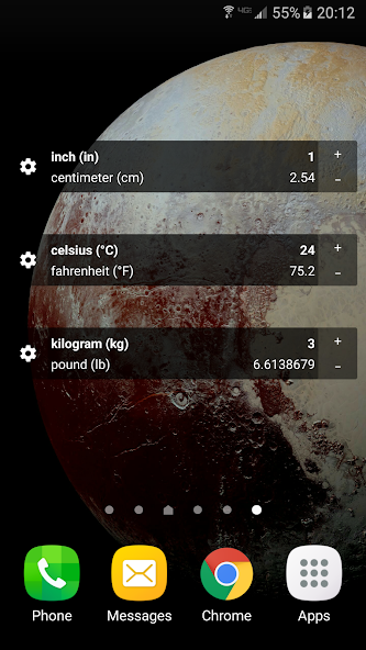 Utility for converting over 100 various units of measurement (distance, area, volume, mass, temperature, and many others). Whether it's the simplest conversions, or some of the most obscure, this tiny yet powerful app has you covered. For your most often-used conversions, the app supports placing a Widget on your home screen!