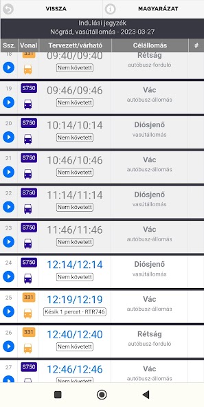 النسخة المكتوبة على شبكة الإنترنت Menetrendek.hu من Android.