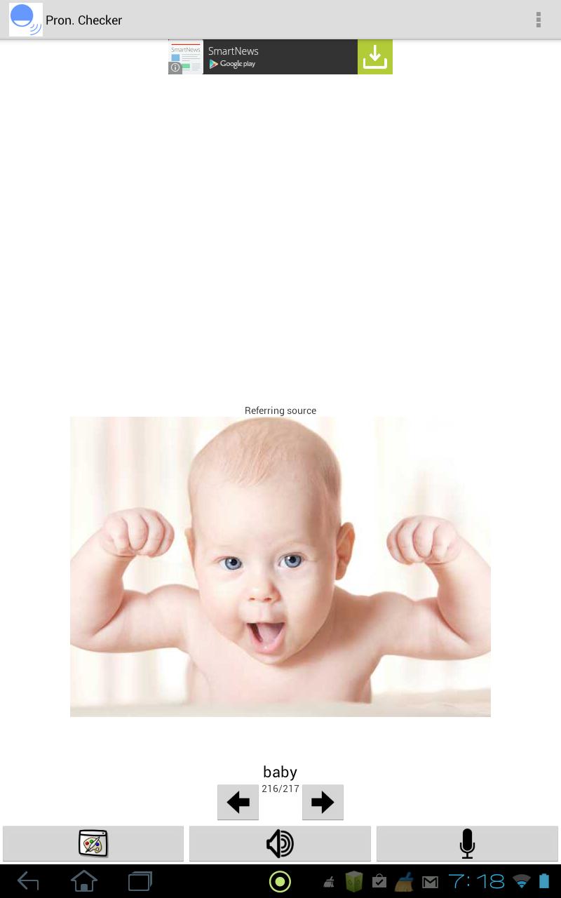 هذا هو تطبيق لممارسة نطق اللغة الإنجليزية. يمكن لهذا التطبيق التعرف على صوتك ويحدد ما إذا كان النطق المناسب. ويتم عرض الصورة المقابلة للكلمة أيضًا. لذلك ، في الوقت نفسه ، ستحاول حفظ النطق ليس فقط ولكن أيضًا الصورة.