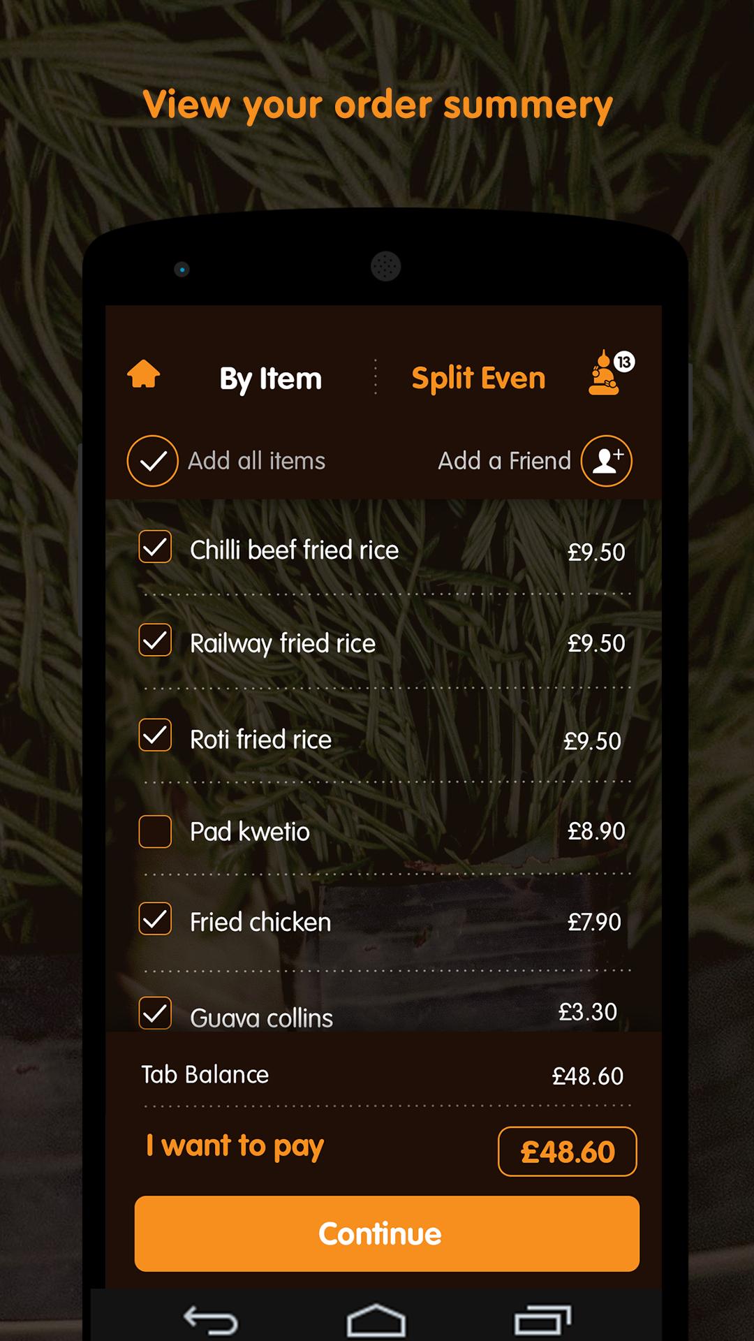 ميزة الرواتب في الجدول لا تعني الانتظار أكثر من الفاتورة ؛ يمكنك اختيار متى تدفع ، دون الحاجة إلى الإبلاغ عن النادل. لا مزيد من الصداع عندما يتعلق الأمر بمعرفة من يدين بما ؛ تسرب وظيفة الفاتورة تجعل تناول الطعام مع الأصدقاء سهلة.