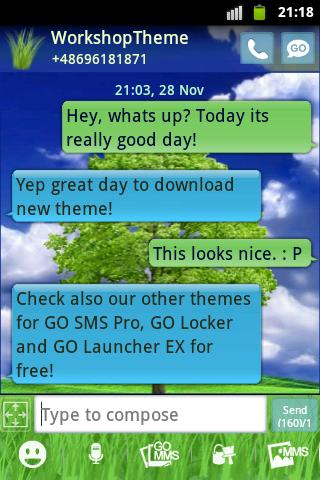 This a new skin for GO Sms Pro Theme = tree garden Theme is clear, simple them designed specially for people who love the green, nature and trees by WorkshopTheme