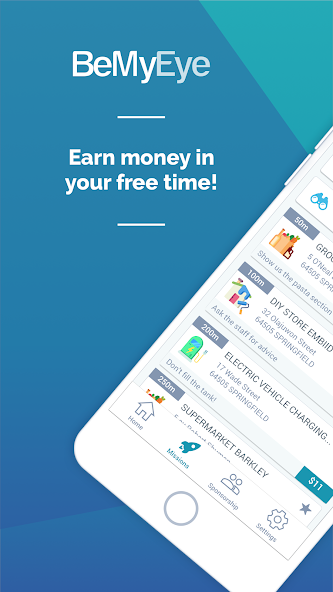 هل تريد العثور على وظائف جانبية سهلة وسريعة لكسب المال في وقت فراغك؟ قم بتنزيل تطبيق BeMyEye اليوم واكتشف المهام المتاحة من حولك.
