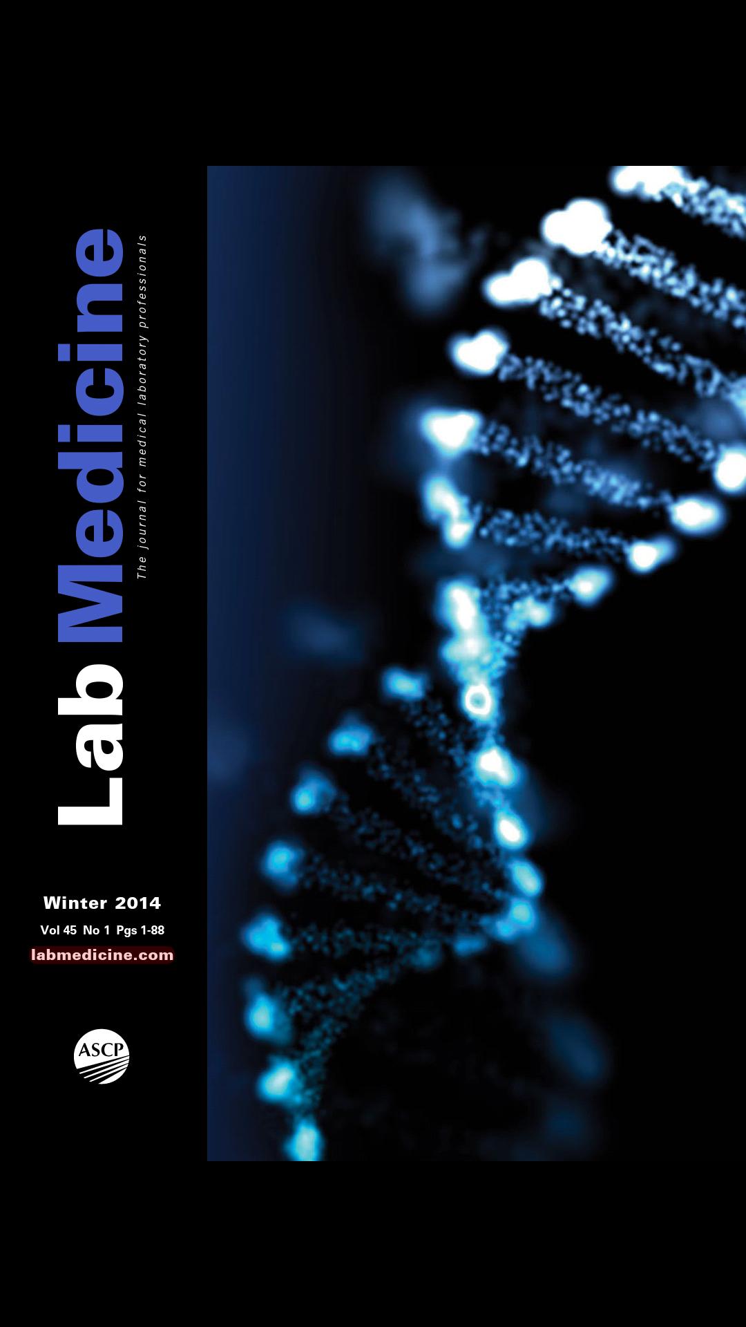تم نشر Labmedicine من قبل الجمعية الأمريكية لعلم الأمراض السريرية ، وهي مجلة ربع سنوية لمراجعة الأقران لمحترف المختبر السريري. يوفر Labmedicine تغطية شاملة لجميع جوانب الطب المختبري ، بما في ذلك الأبحاث حول تطبيق الأدوات والتقنيات الجديدة للكيمياء السريرية ، علم الأحياء الدقيقة ، أمراض الدم ، علم المناعة ، علم الأمراض الجزيئي ، علم الخلايا ، علم الأنسجة ، وإدارة المختبر والإدارة.