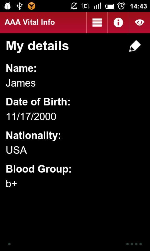 - معلومات عنك لخدمات الطوارئ (الاسم ، نوع الدم ، الحساسية ...).