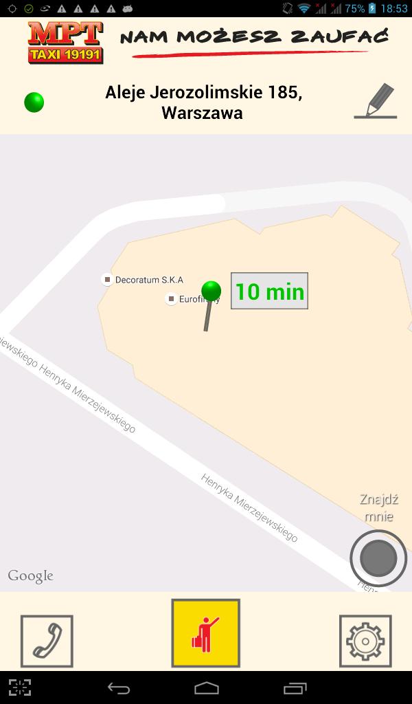 هذا هو شكل مريح وحديث للغاية لطلب سيارات الأجرة. يحدد التطبيق مكان الطلب ويدير أقرب سيارة أجرة متوفرة. الآن لا يتعين عليك معرفة العنوان الذي تطلب فيه سيارة أجرة أو حتى رقم هاتف إلى سيارة أجرة راديو المقر الرئيسي. أنت فقط تنقر وسنعتني بالباقي.