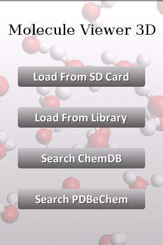 افتح تنسيقات ملفات جزيء 3D الأكثر شيوعًا المحفوظة على بطاقة SD الخاصة بك أو اختر من أحد الجزيئات الـ 243 المضمنة في مكتبة الجزيء.