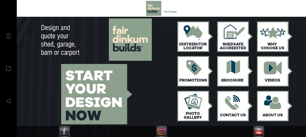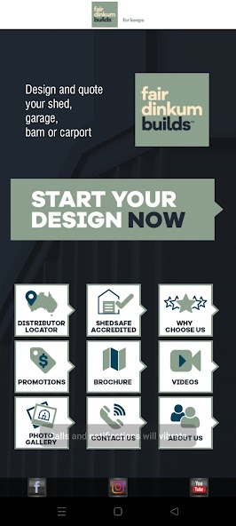يمكن Fair Dinkum Builds ، وهو الموزع الرائد في أستراليا للمباني الصلب ، أن يوفر لك اقتباسًا عن التصميم الخاص بك. تم Fair Dinkum Builds Shedsafe المعتمدة (AUS) وتم تصميمها للامتثال لرموز البناء في أستراليا ونيوزيلندا ، باستخدام الصلب الجودة من Bluescope / Colorbond (AUS) و NZ Steel / ColorSteel (NZ).