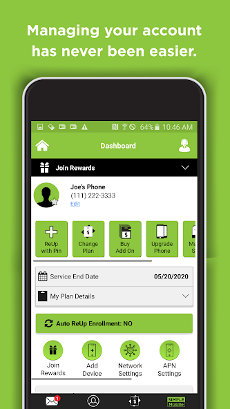 إدارة خدمة الهاتف المحمول البسيطة في أي مكان ، في أي وقت. قم بتنزيل تطبيق Simple Mobile My Account اليوم ولا تقلق أبدًا بشأن كيفية إعادة التعبئة مرة أخرى.