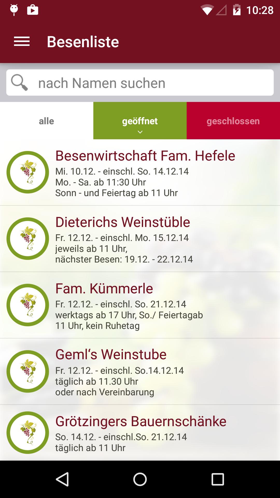 سيتم إيقاف هذا التطبيق في 30 ديسمبر 2017. يرجى إلغاء تنشيط اشتراكك. يمكن الآن العثور على جميع المعلومات حول Besen الخاص بك هنا: www.geniesser-portal.de