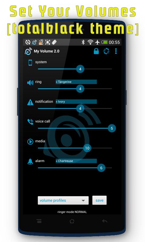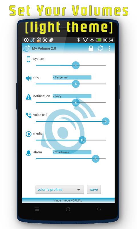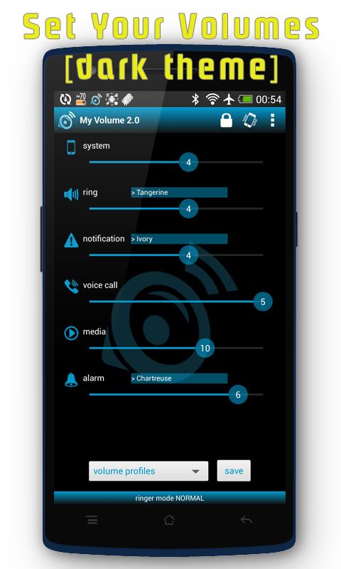 My Volume هي مدير صوت لمستويات الصوت والوضع العادي/الاهتزاز/الصامت لجهاز Android الخاص بك. مجاني وخالي من الإعلان.