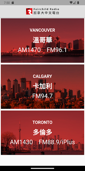 تأسست مجموعة Fairchild Radio في عام 1993 ، وهي شبكة إذاعية وطنية متعددة الثقافات الوحيدة في كندا مع عمليات في فانكوفر (AM1470 و FM96.1) ، كالجاري (FM94.7) وتورونتو (AM1430 و FM88.9). On top of being Canada's number one Chinese radio station, Fairchild Radio also provides quality radio programming in over 40 languages and acts as the hub of news, information, music and entertainment for the numerous yet affluent ethnic communities in these three cities.
