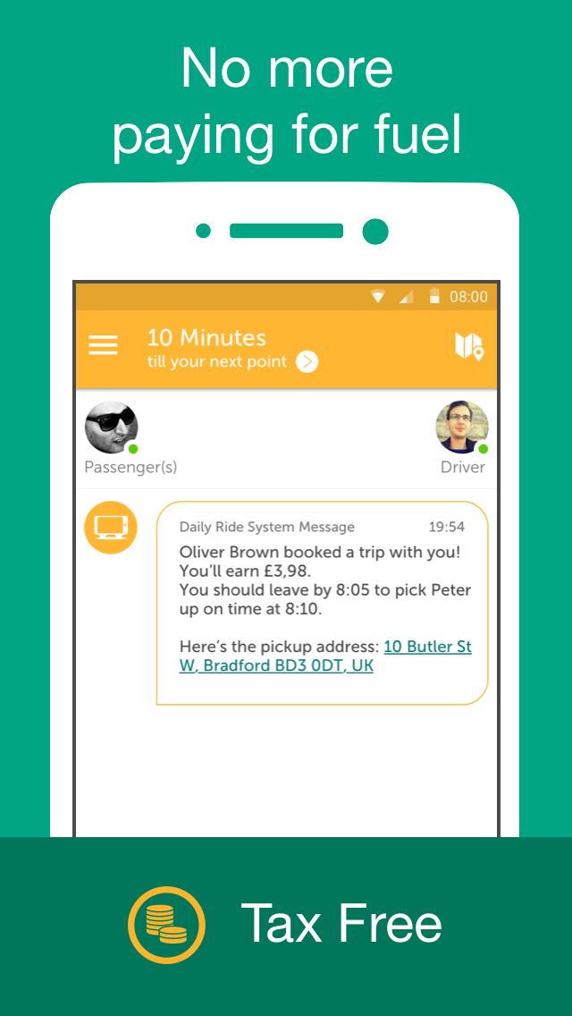 يقول السائقون ببساطة مقدار ما يرغبون في كسبه ، ويقوم الركاب بسهولة بحجز واحد أو العديد من ركوب الخيل. بمجرد حجز الركوب ، يمكن لجميع أعضاء السيارات الدردشة مع بعضهم البعض.