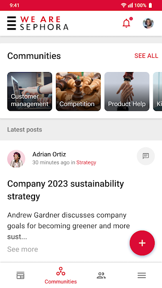 - شارك بين مجتمعاتك: انضم إلى مجتمعاتك المفضلة ، وشارك نجاحاتك ، ودعك مستوحاة من منشورات زملائك في المتجر وفي المقر الرئيسي.