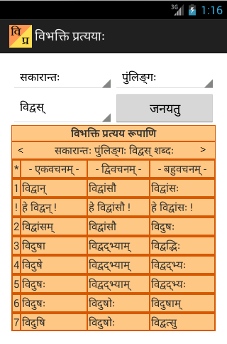 يساعدك ViPra في إنشاء جدول انحراف لكلمة محددة. يستخدم هذا التطبيق البرنامج النصي Devanagari لتقديم الجداول.