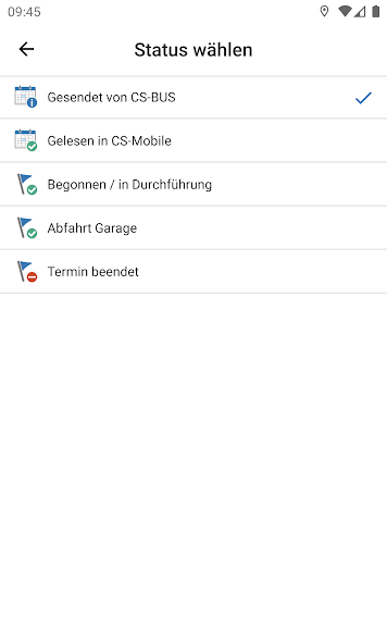 يمكن لمستخدمي الهواتف المحمولة (برامج التشغيل ، المرسلون ، إلخ) استدعاء بيانات الموعد هذه باستخدام اتصال بالإنترنت وتطبيق الهاتف المحمول "CS-Mobile". يمكن لمستخدمي المسؤولين المحددة عرض المواعيد عبر كل شيء