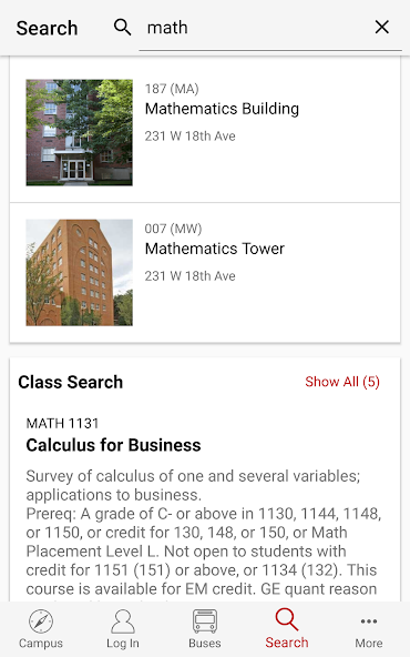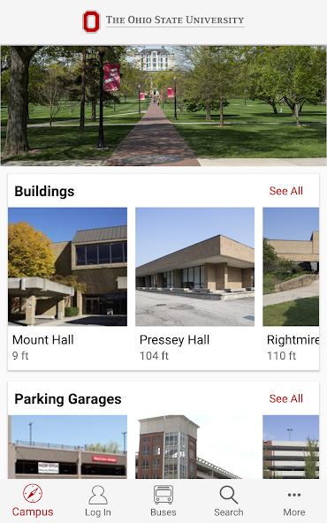 عند تسجيل الدخول إلى تطبيق Ohio State Android على هاتفك ، يمكنك: